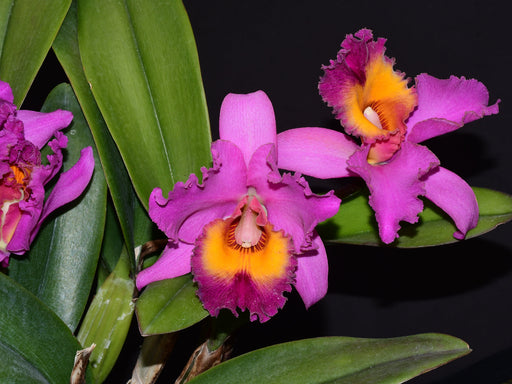 This extraordinary hybrid orchid is a cross between Cattleya lueddemanniana 'Salinas' and Blc. Chia Lin 'Shin Shiu', resulting in a medium-sized ep...