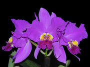 Features blooms with large magenta-purple flowers featuring ruffled petals and a fringed lip marked in deep purple, white, and yellow. Its classic Cattleya shape and vibrant colors make it a striking addition to any collection.