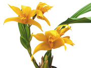 • The flowers are a real treat for the eyes and complement their seductive scent. Although the color and shape may vary slightly, you can expect petals and sepals in intense colors, often in warm golden or brown tones, frequently accented with contrasting markings on the lip. Being a cross between Maxillaria, Anguloa, and Lycaste, this hybrid can produce abundant flower spikes and up to two flowers per spike.