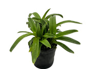 This hybrid develops compact pseudobulbs with narrow, leathery leaves and produces delicate flower spikes. Flowering can be variable due to seed reproduction.