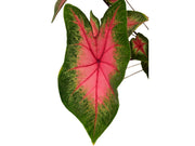 Plant Characteristics: Features large, heart-shaped leaves that come in a spectacular range of vibrant colors including red, pink, green, and white. Also known as Fancy-leafed Caladium, distinguished by their colorful patterns and combinations that create stunning displays.