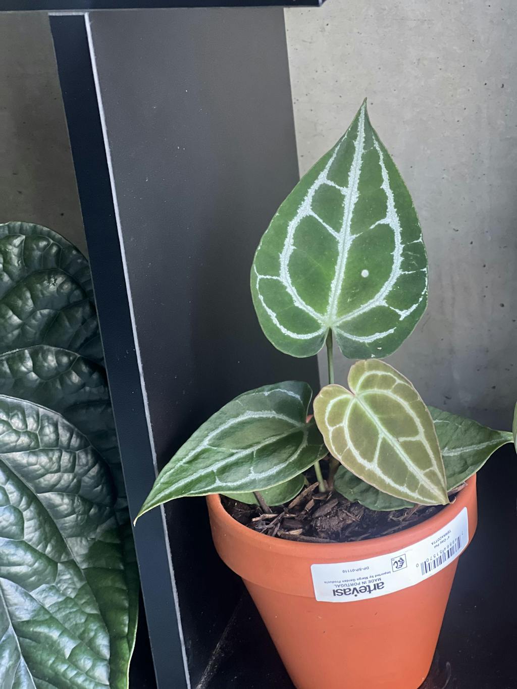 'Silver' is a selected form of Anthurium crystallinum with bright silver-white veins creating stunning contrast. Features large heart-shaped leaves with luminous vein patterns and color transitions from bronze-copper when young to deep green with silver veins when mature.