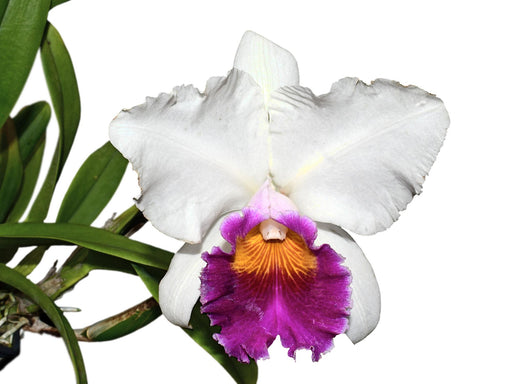 This extraordinary primary hybrid orchid, a captivating historic cattleya cross from 1898 between Laelia purpurata purple lip and Cattleya intermed...