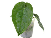 This unique hybrid features large heart-shaped leaves with a deeply textured surface and raised veins, combining the best traits of its parents (Anthurium forgetii × Anthurium luxurians) to create striking three-dimensional patterns on rich dark green foliage.
