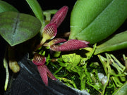 This species produces delicate, fragrant flowers held on basal inflorescences below the pseudobulb. These up 3 cm blooms emit a distinctive musky scent that attracts ants, suggesting a fascinating symbiotic relationship in nature.