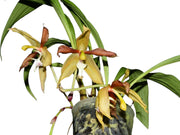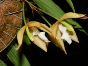 This exceptional intergeneric hybrid combines Houlletia tigrina with Paphinia hirtzii to create 'Alex Hirtz', honoring a significant figure in orchid breeding while showcasing the unique characteristics that result from this fascinating cross between two distinctive genera.
