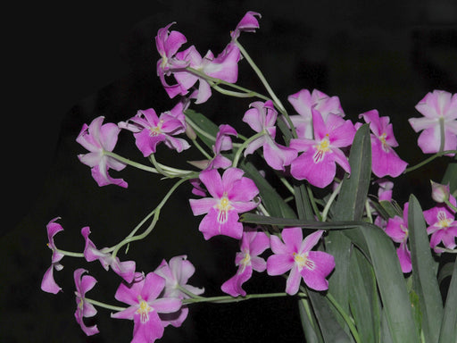This is a hybrid orchid from a cross of Mps. vexillaria x Mps. Twin Peaks. This lineage results in a compact plant that produces elegant, large, fl...