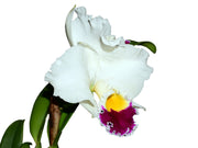 This hybrid, typically produces large, full, well-formed flowers often in pure white or creamy white with a striking, brightly colored labellum (lip), such as magenta or yellow.