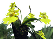 La Erycina pusilla , una encantadora orquídea en miniatura, florece en la calidez de los ambientes tropicales. Esta pequeña epífita se encuentra en árboles y arbustos de pastizales, cafetales y bosques húmedos, y crece a altitudes de entre 500 y 950 metros. Su distintiva forma de abanico se compone de numerosas hojas aplanadas y lanceoladas con puntas puntiagudas, lo que le da un aspecto ligeramente carnoso. Sus delicadas flores pueden aparecer durante todo el año en tallos cortos de 2 cm de largo que emergen de las axilas de las hojas; cada tallo contiene una sola flor. Las pequeñas brácteas puntiagudas que rodean la flor son más cortas que el ovario, y el tallo floral no es más largo que las hojas. Su diminuto tamaño y su preferencia por la humedad la convierten en una opción ideal para el cultivo en terrarios.