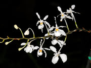 The elegant needle-like foliage and reliable blooming cycles make it an ideal choice for collectors. Features distinctive white flowers with bright yellow centers that distinguish it from other Southeast Asian orchid species.