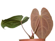 Anthurium besseae aff. , posee tonos de hojas oscuros y aterciopelados, resaltando