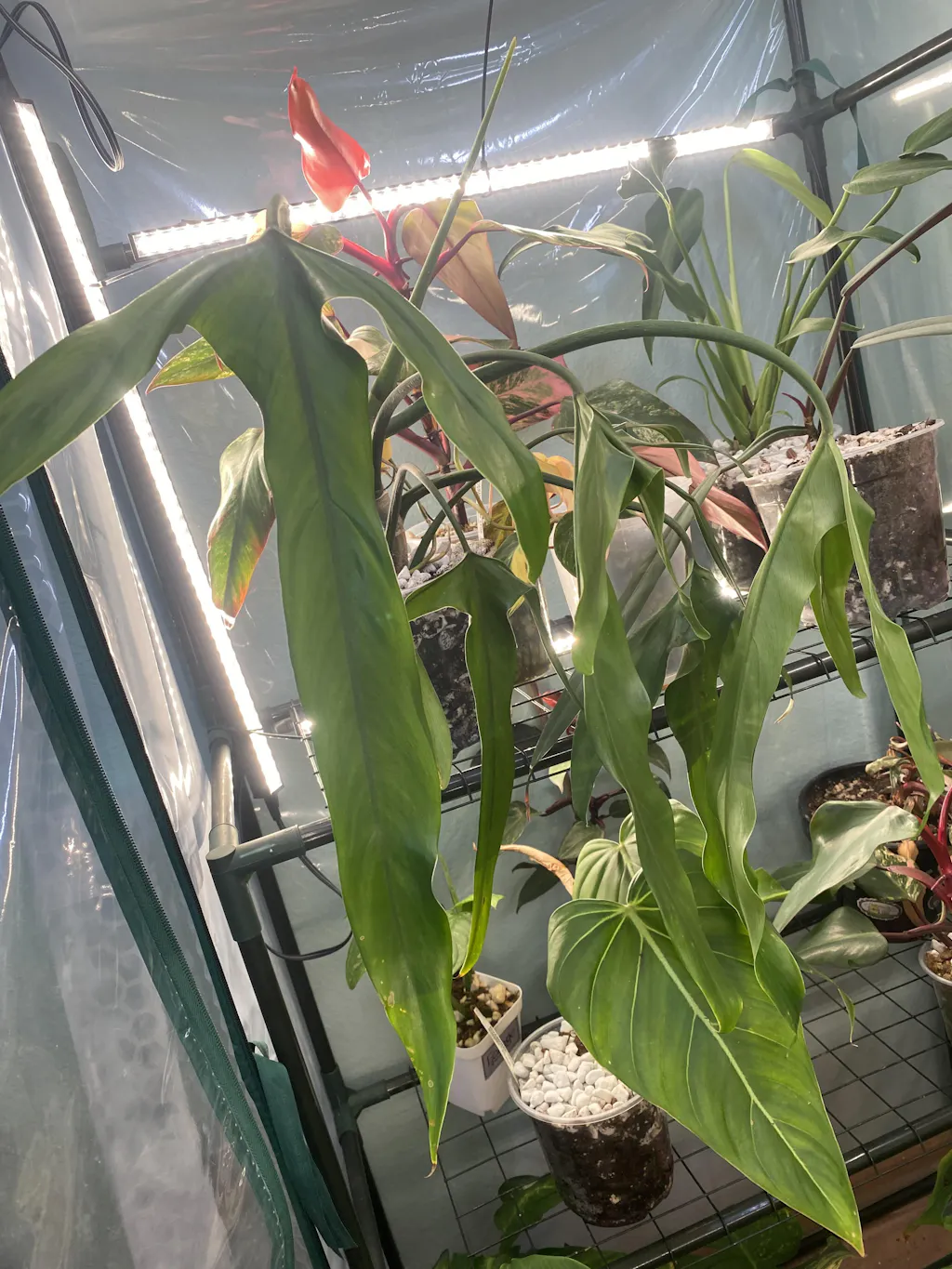 Philodendron paloraense climbs with support and develops striking serrated leaves as it grows. Its unique silvery-blue color distinguishes it, making it a valuable choice for collectors seeking rare species.