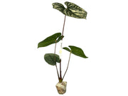 This plant features large, heart-shaped leaves with quilted texture and prominent venation. This unique hybrid combines the best traits of both parents, creating a prized choice for collectors.