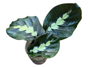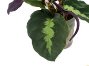 This striking prayer plant has beautiful oval leaves with a rich green color and subtle, light green patterns. The leaves have a stunning burgundy-purple underside, which creates a dramatic contrast when they fold up at night. This unique habit makes it a captivating addition to any plant collection.