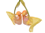 Coryanthes MacRosea is a hybrid orchid (Crths. alborosea x Crths. macrantha) known for its unique bucket-shaped flowers and fascinating pollination process. This warm-growing epiphyte showcases one of nature's most specialized orchid-pollinator relationships.