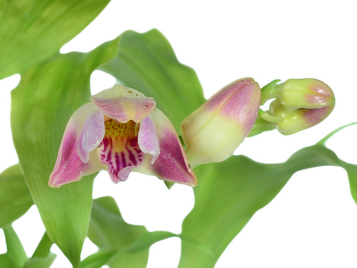 This stunning epiphytic orchid is celebrated for its delicate pink and white flowers with distinctive purple lip markings and compact growth habit,...