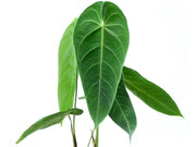 Large-sized plant with dark green, velvety leaves and prominent venation that adds to its ornamental appeal. Known for its striking foliage and unique inflorescences that make it highly valued among collectors.