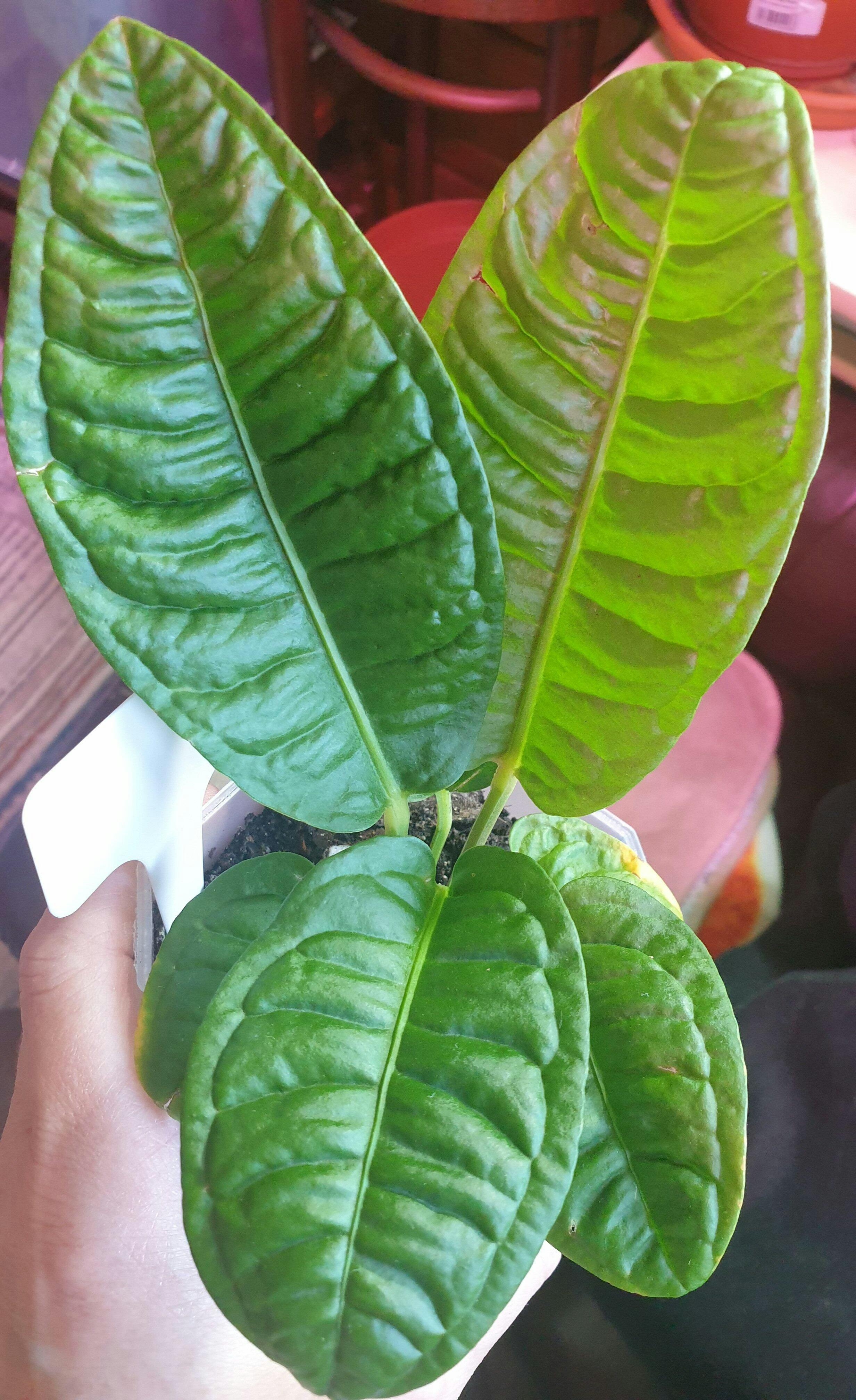 Anth. reflexinervium is a distinctive species known for its remarkable bullate (puckered) foliage that creates a deeply textured, quilted appearance. Even as a seedling, the leaves already show the characteristic reflexed nerves and prominent venation that give this species its name.