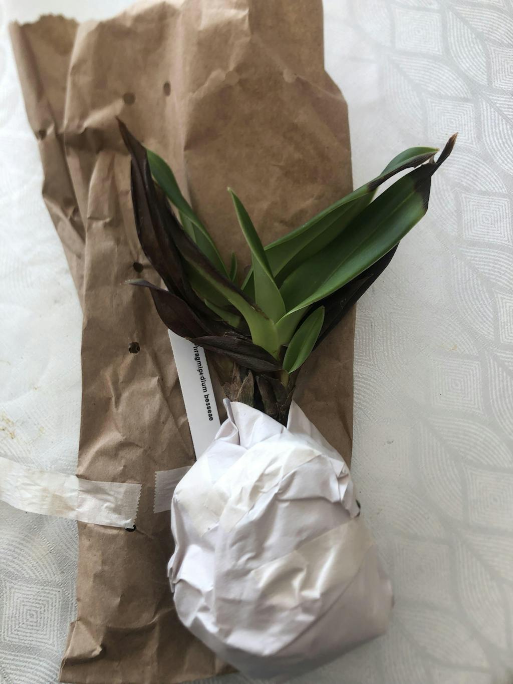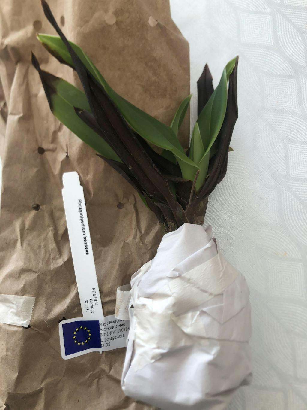 I've picked up ma command yesterday at Abbaye de Vaucelles. The both other plants are good (Phragmipedium humboldtii & Bulbophyllum medusea) but the phragmipedium bessiae has it leaves most dark. I've repotted it & will see !
