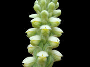 This terrestrial orchid, native to the high-mountain ecosystems of the Andes, is distinguished by its robust stature and basal rosette growth with fleshy, lanceolate leaves. It is recognized for its dense, spike-like terminal inflorescence covered in numerous small white flowers, protected by hairy bracts that give it the woolly appearance characteristic of paramo plants.
