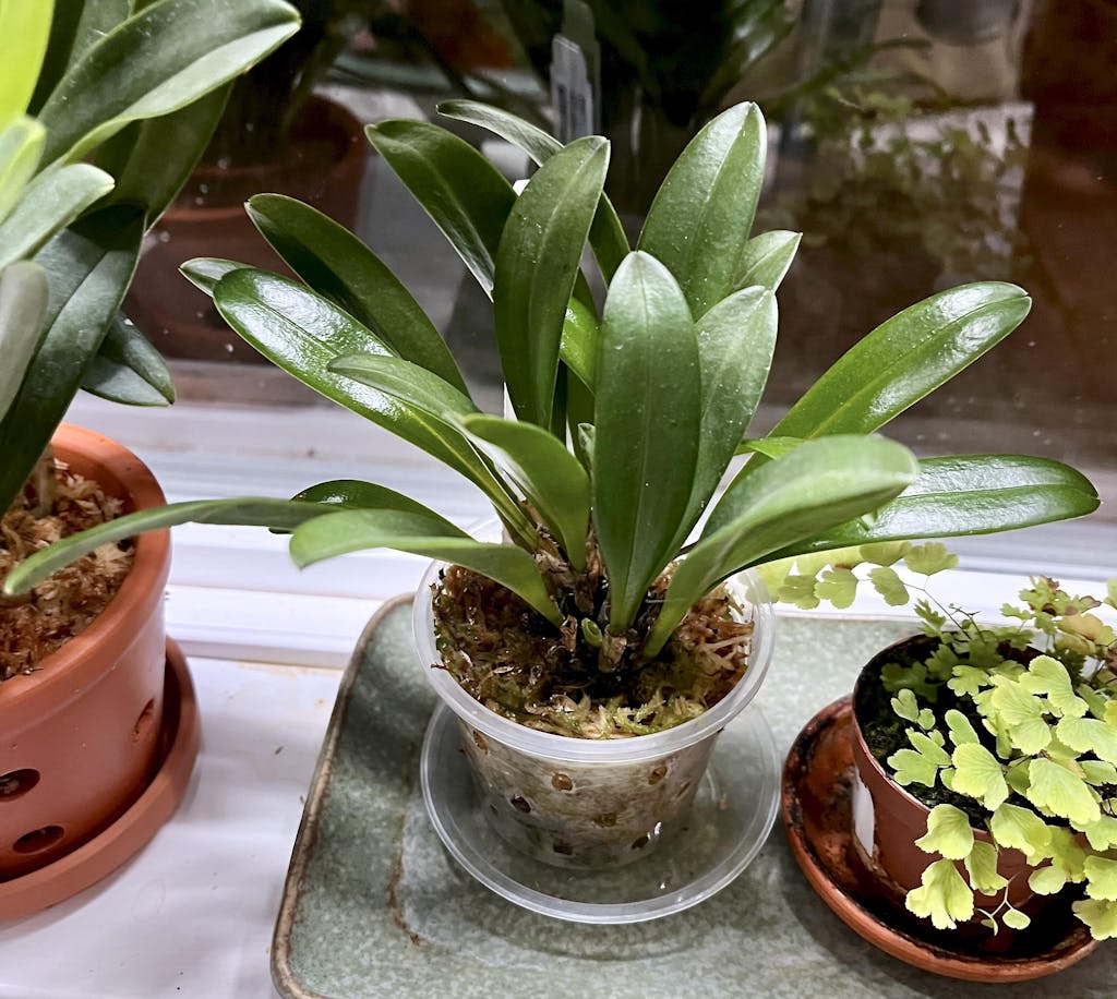 This plant dropped a few leaves when I got it. I was misting it daily like I do with most of my orchids but stopped when it dropped a few leaves. It has a leave shoot that hasn't expanded; I'll feel better about the plant when that happens. I thought I bought this plant while looking for fragrant orchids but I can't find any other information on the web as to its fragrance.