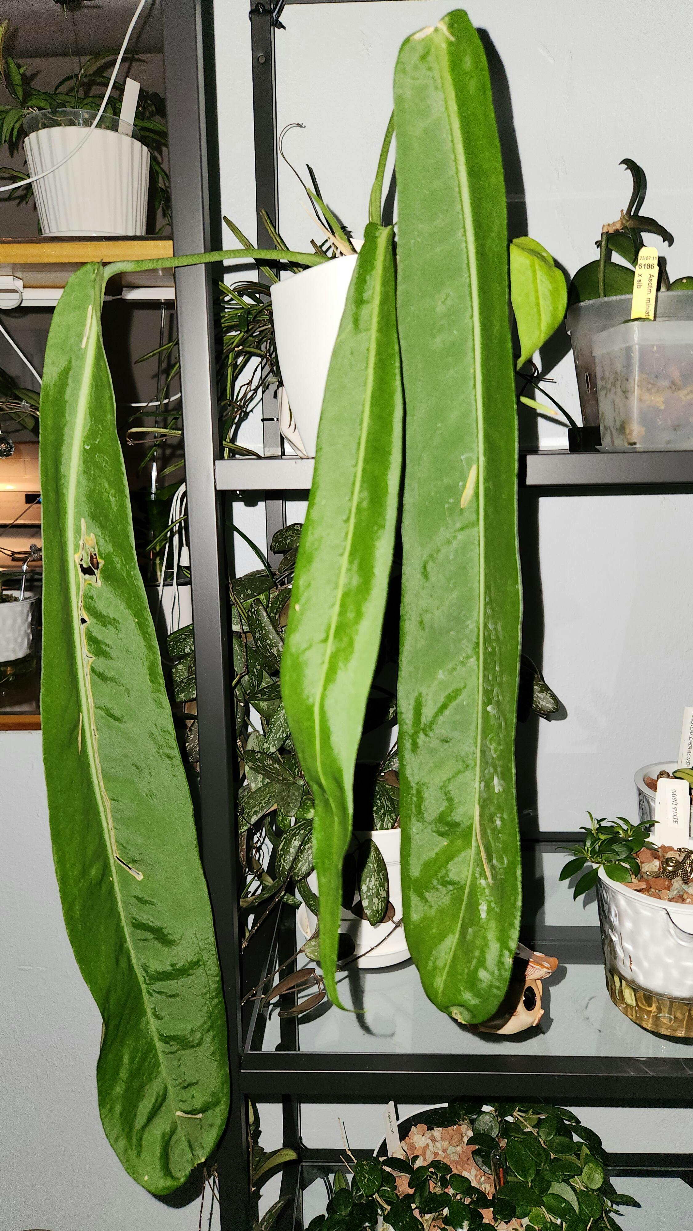 Very large and healthy pallidiforum. It was a bit dry from travels but nothing 48 hours soaking in water couldn’t fix. She plumped up and looked gorgeous. Potted her in an airy aroid mix in a self watering pot and she happily sits in a northwest window where I enjoy her daily.