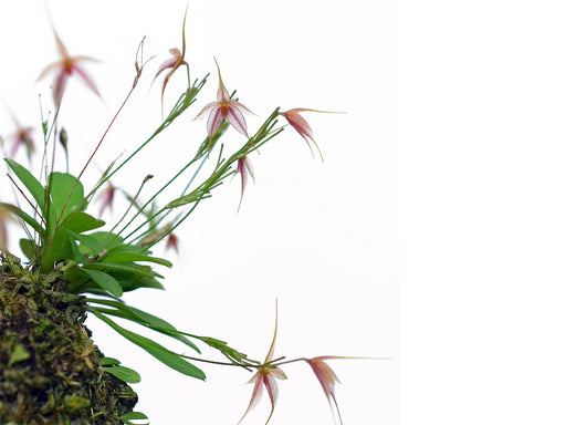 This miniature species captivates with its tiny, translucent flowers featuring elongated sepals that taper into delicate thread-like tails, creatin...