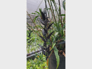 This striking terrestrial bromeliad from Ecuador is celebrated for its elegant rosette form and vibrant black tubular flowers that attract hummingbirds, making it an excellent choice for collectors seeking distinctive bromeliads with architectural foliage and reliable blooming.