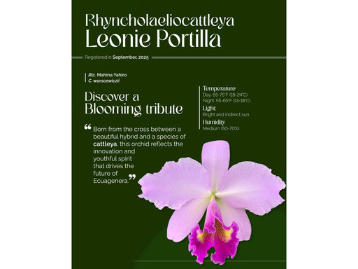 This extraordinary hybrid orchid is a distinguished cross between Rlc. Ingrid de Portilla and C. iricolor, resulting in a robust epiphytic orchid r...